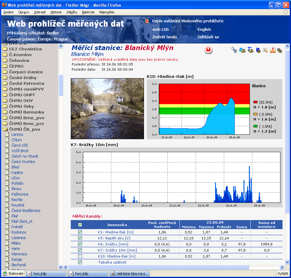 Univerzálnost námi dodaných varovných limnigrafických stanic M4016-G3 dovoluje jejich postupné dovybavování o další čidla a senzory.